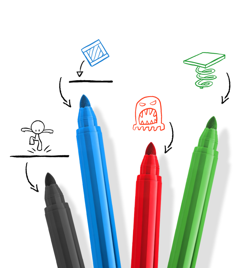 Dessinez vos niveaux sur une feuille A4 avec 4 feutres.